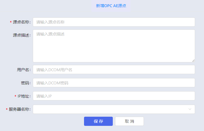 • 服务器名称:OPC AE服务器名称。