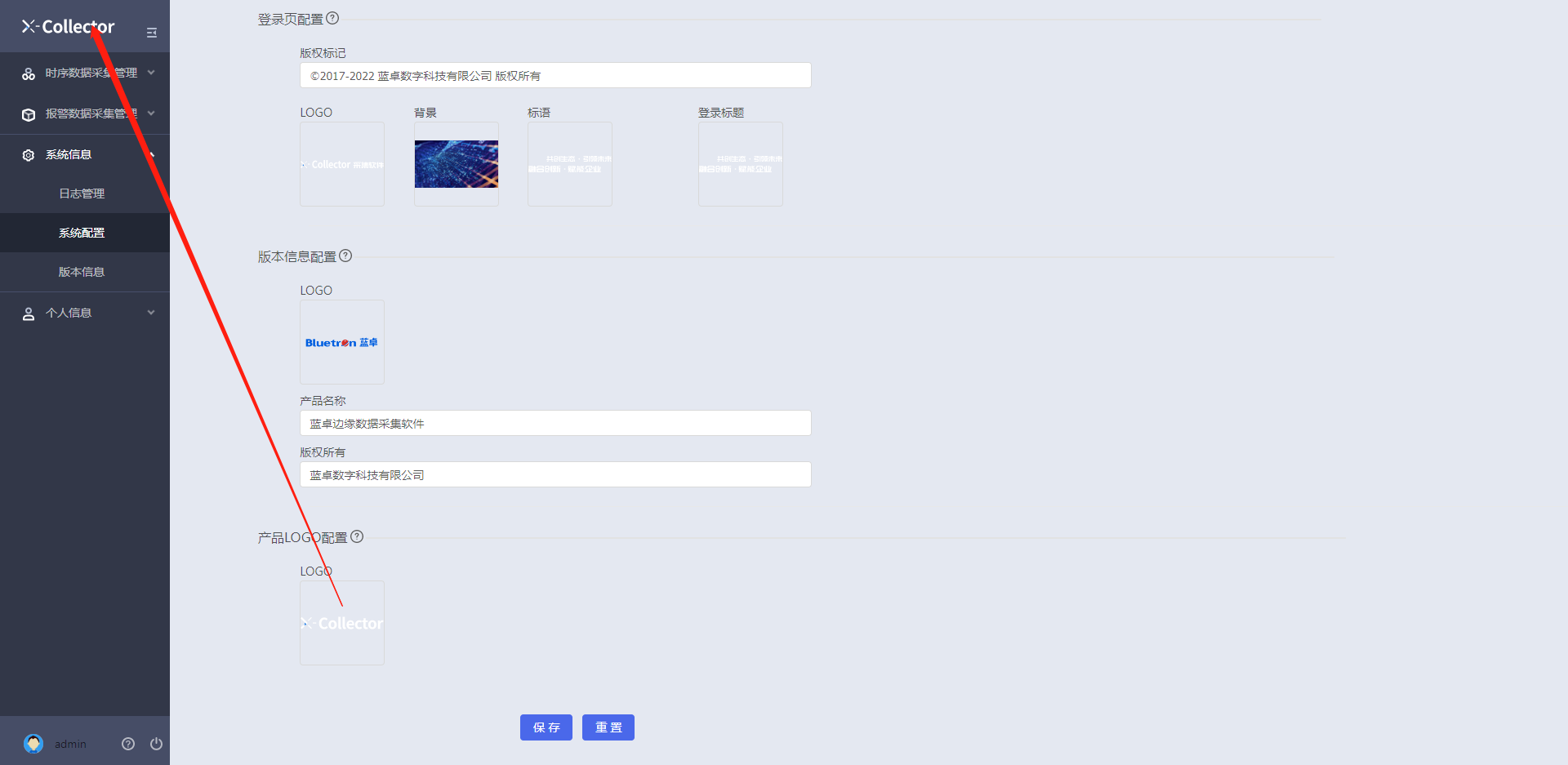 配置完成后点击〔保存〕;点击〔重置〕恢复系统默认设置信息。