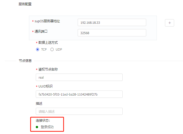 步骤4:配置鉴权节点信息。输入鉴权节点名称、输入supOS端生成的UUID。