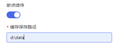 步骤7:配置断点续传:支持网络断线期间的历史数据回补,开启断点续传,输入缓存保存路径,开启断点续传后缓存数据自动保存在该路径下。采集器安装完成后断点续传默认打开,需要配置缓存保存路径。数据上送方式为UDP时,不支持断点续传。