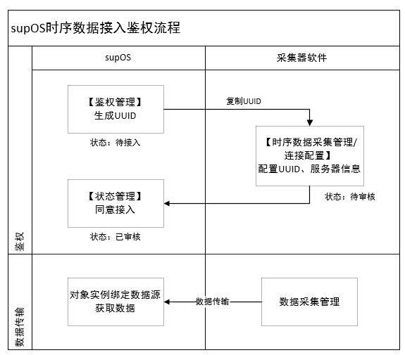 X-Collector需要supOS平台提供的UUID才可以接入supOS平台,下图为X-Collector软件接入supOS平台流程示意图。