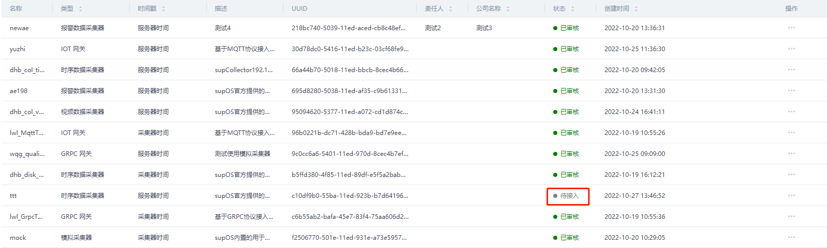 - 已审核:绿色,表示已有采集器通过该UUID接入。
