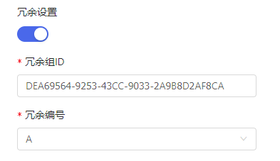 步骤6:冗余设置:若采集器需要冗余配置,开启此选项,输入冗余组ID及冗余编号。